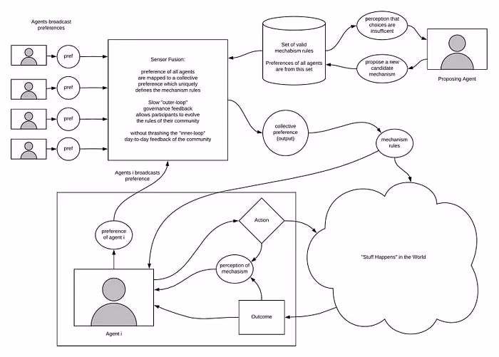 Simon de la Rouviere. At Frank’s request, I drafted a proposal for continued research on conviction voting which contained the description of governance as“sensor fusion” which included formalizations for both the discrete choice (as in Artonomous) and continuous parameter selection as a collective preference estimation problem.