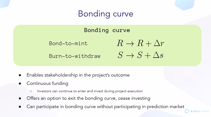 BlockScience and ixo, with the support of the Interchain Foundation, have designed an innovative crypto-economic primitive that implements Risk-Adjusted Bonding Curves (RABC) for financing impact. RABCs are the first formalized instance of a dynamic bonding curve that integrates risk signals from the real-world into decentralized finance, using an internal prediction market mechanism.