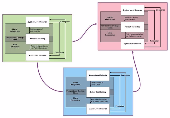 In order to understand and reason about DAOs, this area of research introduces several conceptual models to consider the layers of interaction patterns and criteria involved within and between various institutions. This section is broken down into two subsections: (a) an interscale model for institutions and (b) quantifying the qualitative phenomena of DAOs.