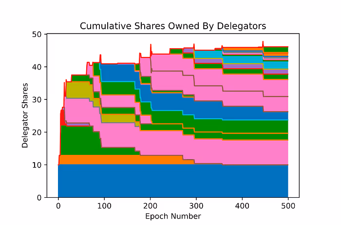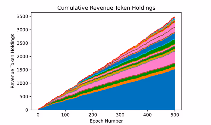 This third mechanism integrates the functionality of the previous two primitives, as well as including a dynamic allocation policy through the introduction of a bonding curve, which manages access rights to a portion of the monthly funds allocation. This mechanism enables a dynamic allocation policy among available contractors, as well as revenue sharing agreements and more complex interactions between DAOs, contractors, and even external agents who wish to delegate tokens to signal support for work they see as valuable. In a proposal with productive outputs, these staking agents could potentially also receive a portion of the revenue generated by those outputs. Tools of interest that already exhibit some of this functionality include The Graph’s delegator role, and this new cadCAD model on revenue-sharing bonding curves.