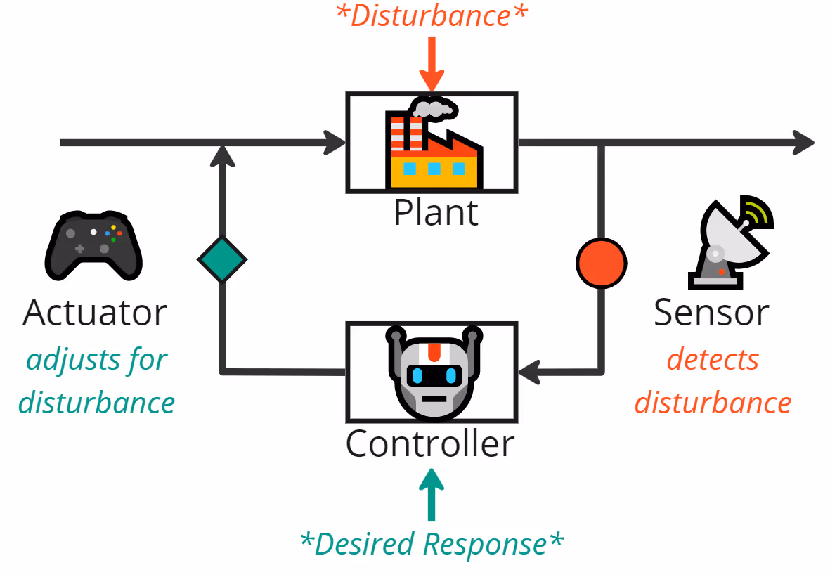 In control theory, the ‘boundaries’ or environment of a system must always be defined. A model can be defined which understands the world within those boundaries sufficiently well to make controlled decisions within that system. Below we’ll explore the parts of a control system.
