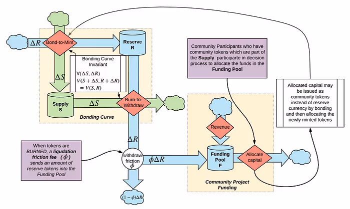 “The augmented bonding curve is a minimalist design which binds a community stakeholdership token to a set of rights or privileges within that community, including but not limited to governance rights over a pool of funds controlled by that community.”