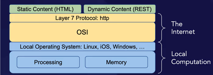 Through Tim Berners-Lee’s work developing and combining HTTP, HTML, and URLs, a network of computers provides the infrastructure for the World Wide Web — everything from static web pages to dynamic content (including the now-ubiquitous REST API, which allows one local computer to use “post requests” to instruct another local computer run a job, followed by “get requests” to retrieve its results.