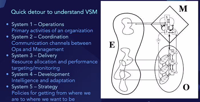 In short, VSM seeks to explain an entity’s operations (O) in the context of its management (M) and its interactions with its environment (E).