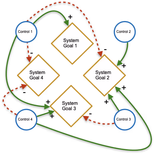 A key point is that trade-offs between system goals will occur and the more complex the system the more difficult it is to optimize for all goals. However there are ranges of parameters that will favor some goals simultaneously to a different extent. Therefore a parameter-goal impact assessment is advisable to allow stakeholders to make a prioritization of the system goals when impacts and consequences are sufficiently understood. This can be compared with the simulation results to arrive at a ranking of various parameter selections.