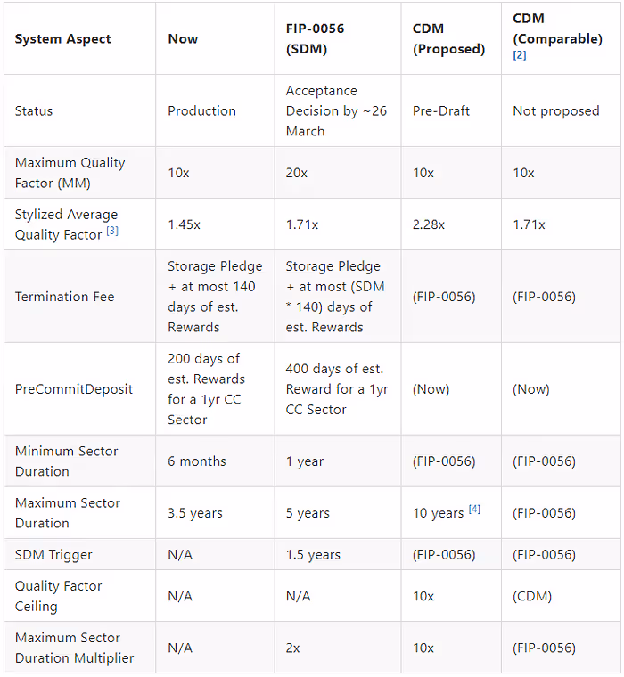 - CDM can take either the proposed or an FIP-0056 like parametrization. The latter will have a more balanced QAP Share among participants and less effect on the temporarily increased Locked Filecoin.