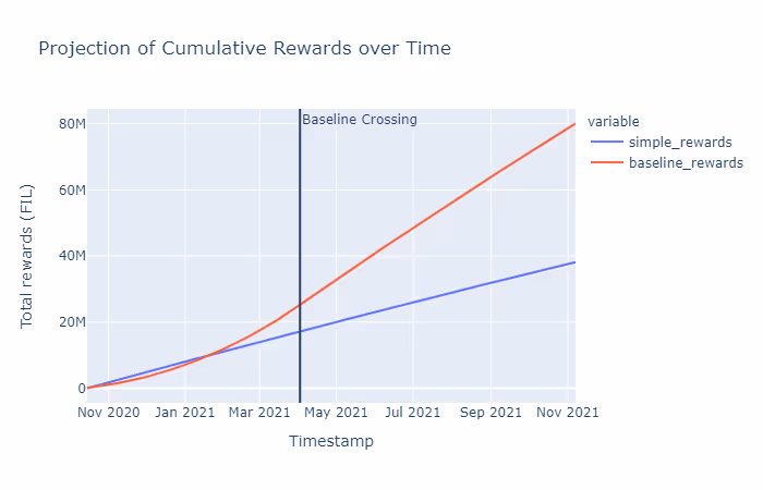 Now that the baseline has been achieved, having increased mining rewards per unit of storage will require making use of the deal marketplace, which will greatly increase the economic incentives of providing capacity through the Deal Rewards and the Filecoin Plus programme.